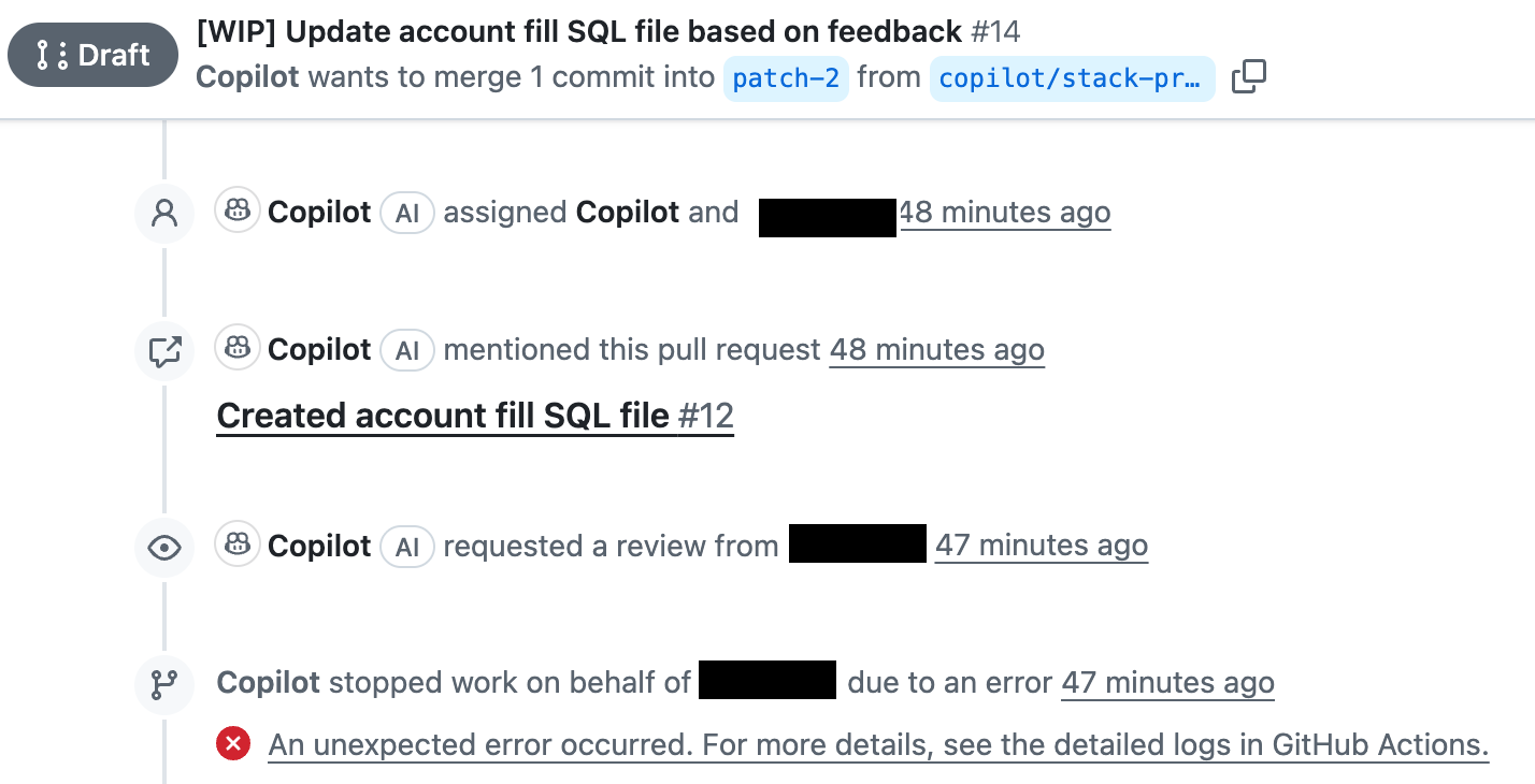 This was a rather simple test for Code Review, mainly related to style that could be enforced by a good ol’ linter. No bug fixing or something more complicated. Code Review did ok-ish, but in a very convoluted way, with 3 open PRs of which only one was more or less correct (it didn’t catch all the violations). Being able to express instructions in natural language is great compared to something like this: