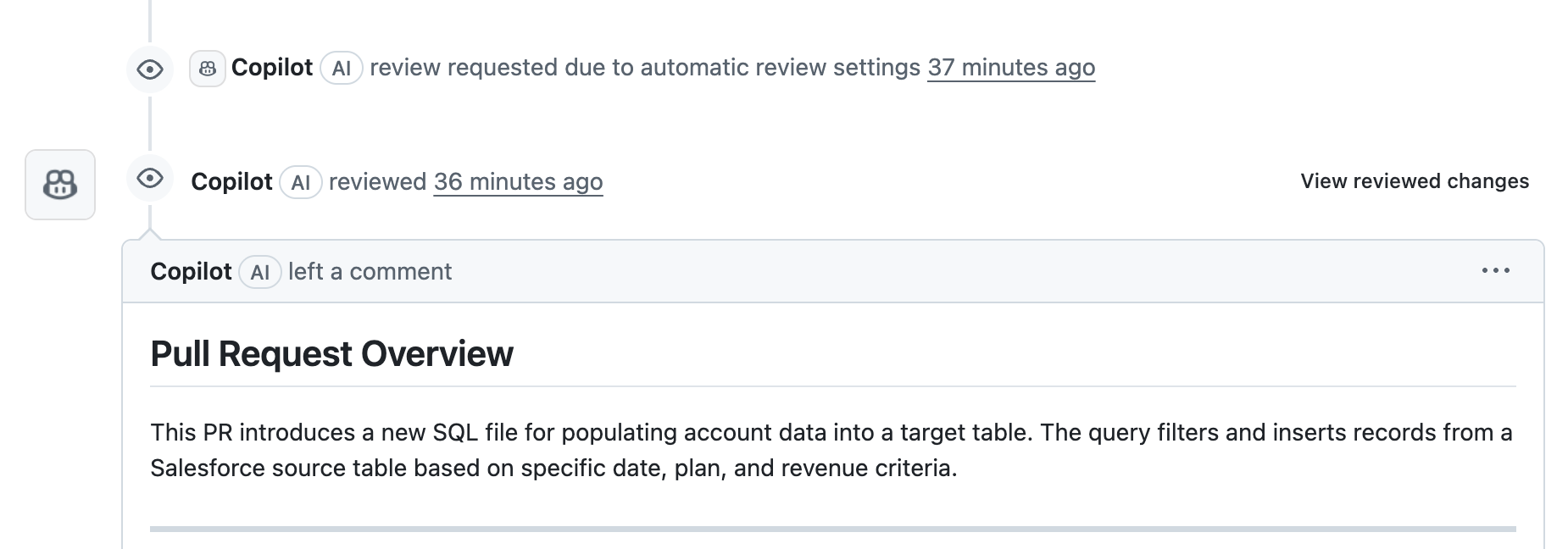 As soon as I create the pull request, Code Review kicks in automatically ...